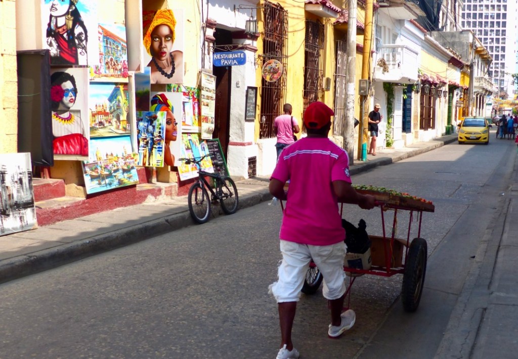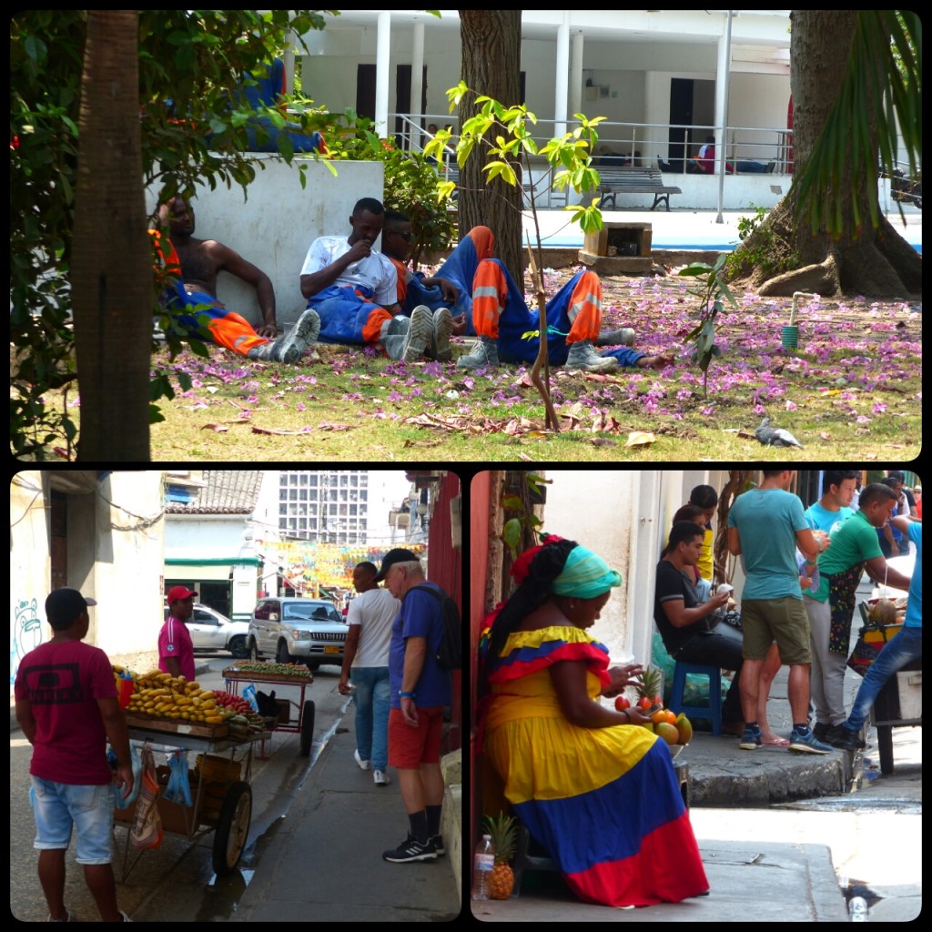 Puis nous rentrons dans notre quartier, dinons dans notre petite pizzeria préférée et faisons un dernier tour vers la Trinidad où il y a des spectacles de rue. C’est notre dernière nuit à Carthagène, dont nous aurons bien arpenté les coins et recoins de la vieille ville et de Getsemani . nous avions prévu d’aller visiter un peu les extérieurs, mais nous n’en avons finalement pas ressenti le besoin. Nous avons préféré profiter de cette ville, de son ambiance particulière. Alors, certes, c’est touristique mais surtout de 10h à 16 h. Donc, le matin nous avons contourné les groupes, en début d’après-midi nous nous sommes reposés, avons lu, communiqué, trié les photos … pour ressortir quand il faisait plus frais et que la masse de touriste était repartie .
