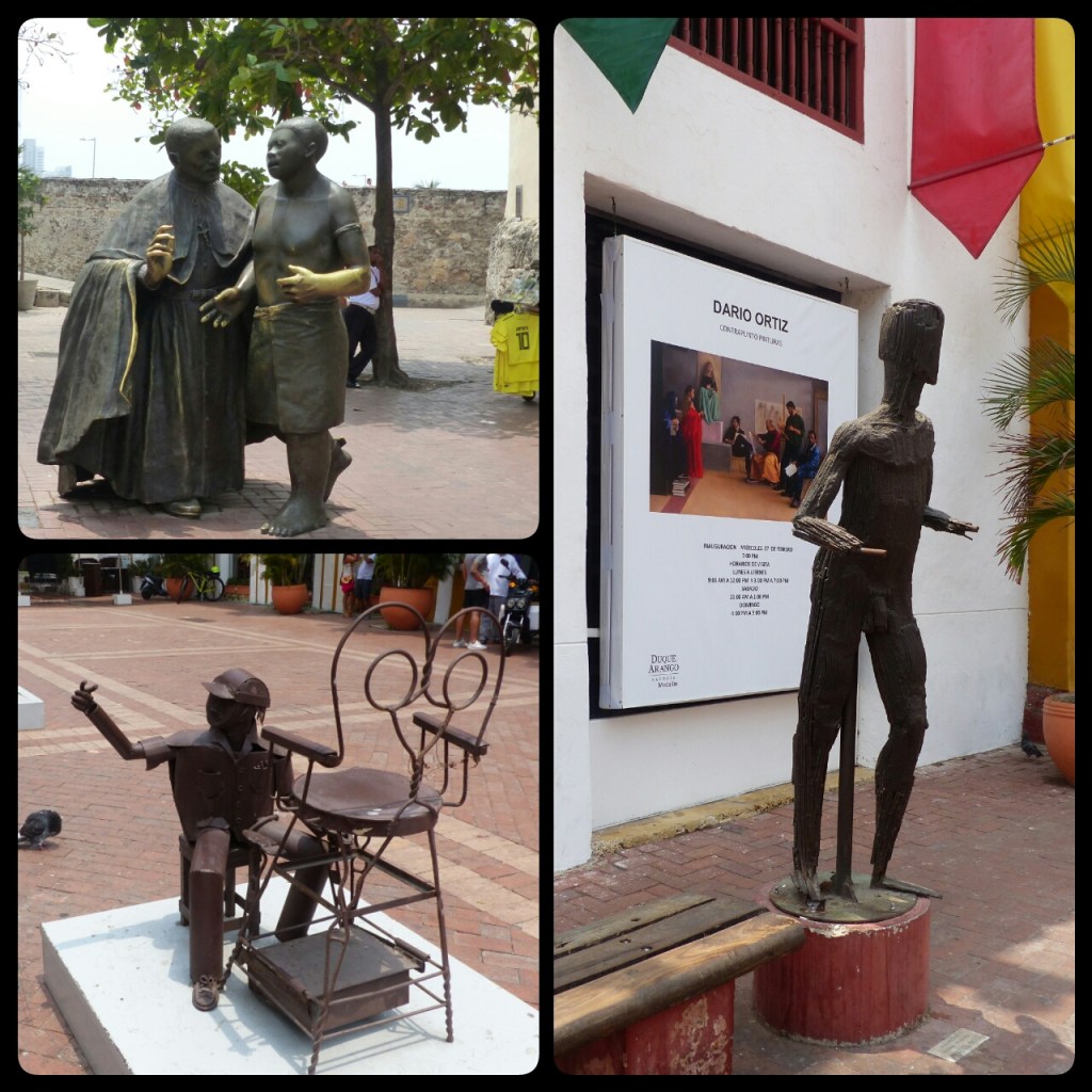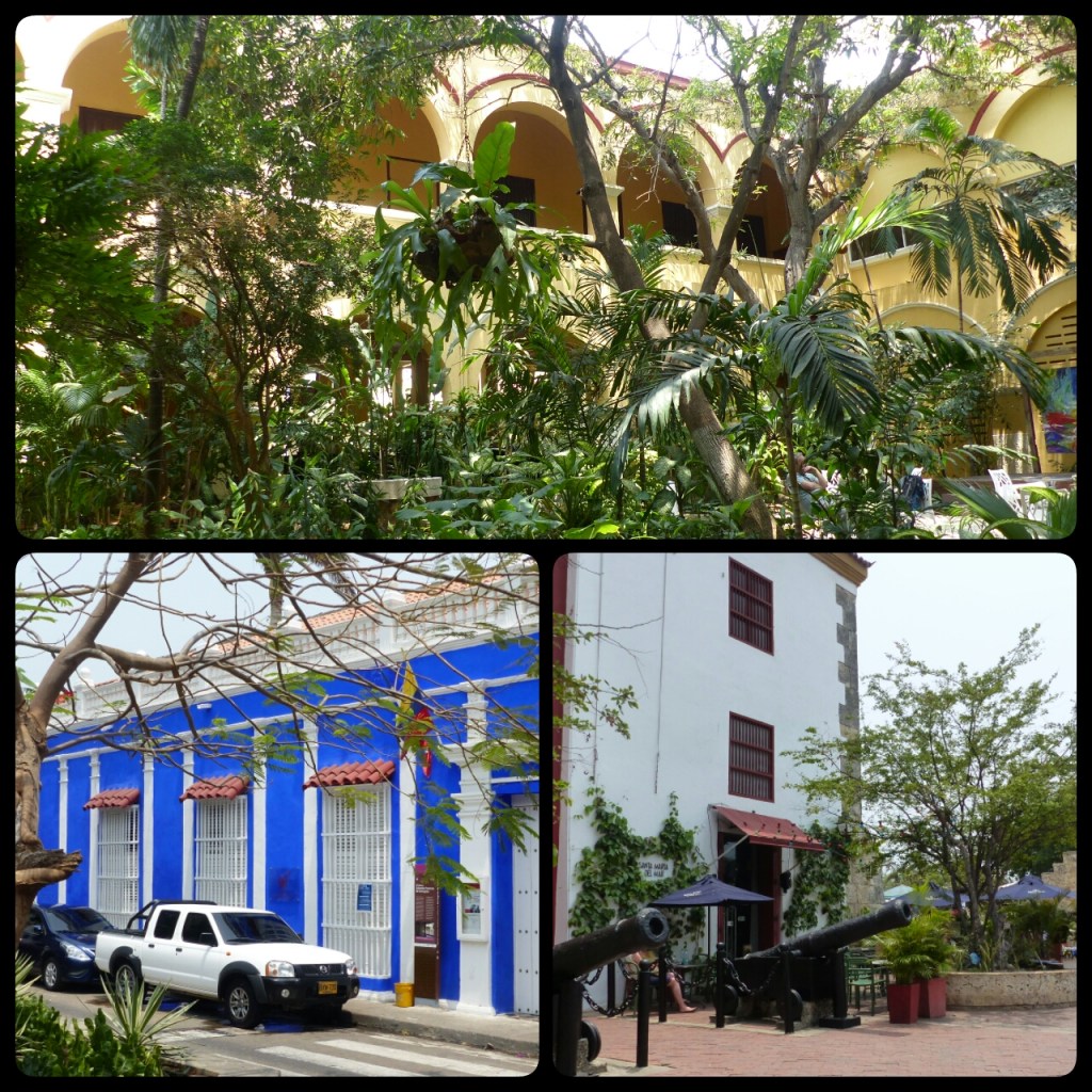 Après un retour à l’hôtel pour échapper à la grosse chaleur du début d’après-midi, nous repartons en abordant cette fois la vieille ville par San Diego. Cette partie est plus calme , moins touristique. Nous en profitons pour monter sur les remparts et pour aller repérer le restaurant « Interno » http://restauranteinterno.com . Il s’agit d’un restaurant un peu spécial situé dans la prison des femmes de Carthagène : la cuisine et le service sont faits par des détenues et le restaurant sert à financer leur réhabilitation. Partagés entre l’envie de faire une bonne action et l’impression d’être un peu voyeurs, nous n’irons finalement pas y diner.