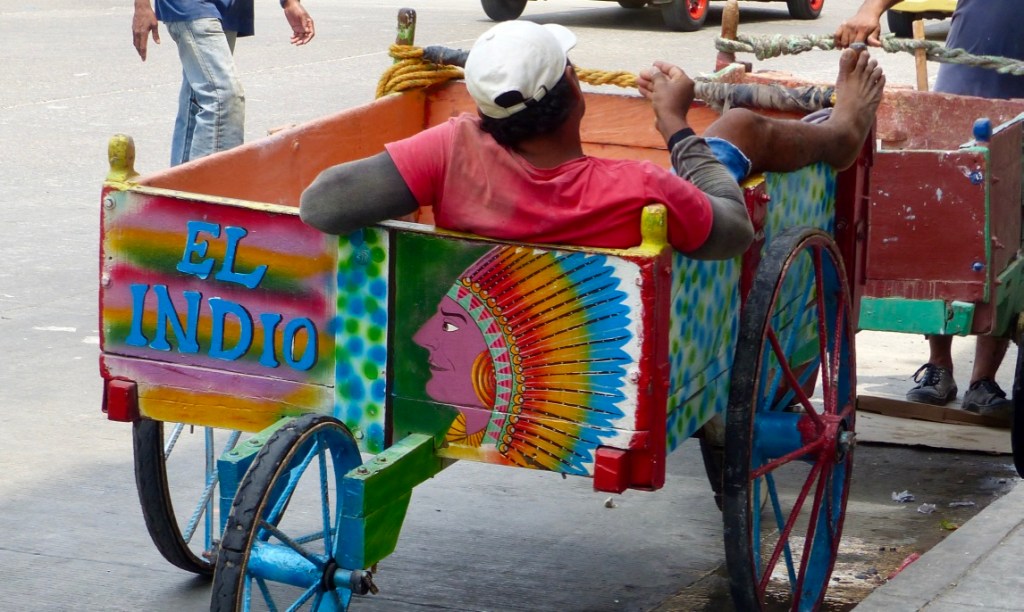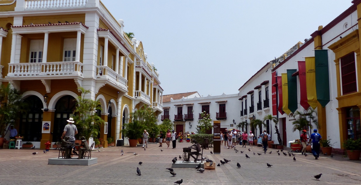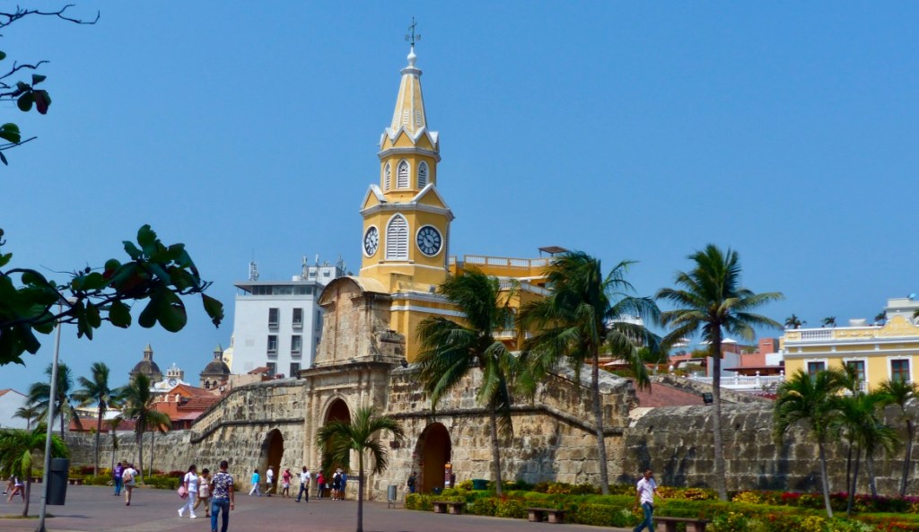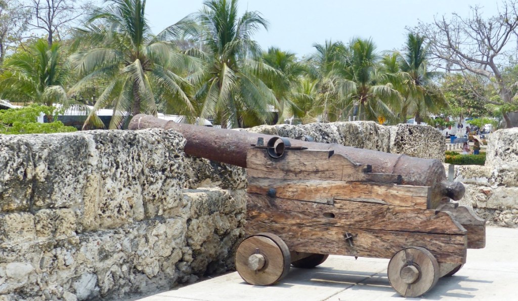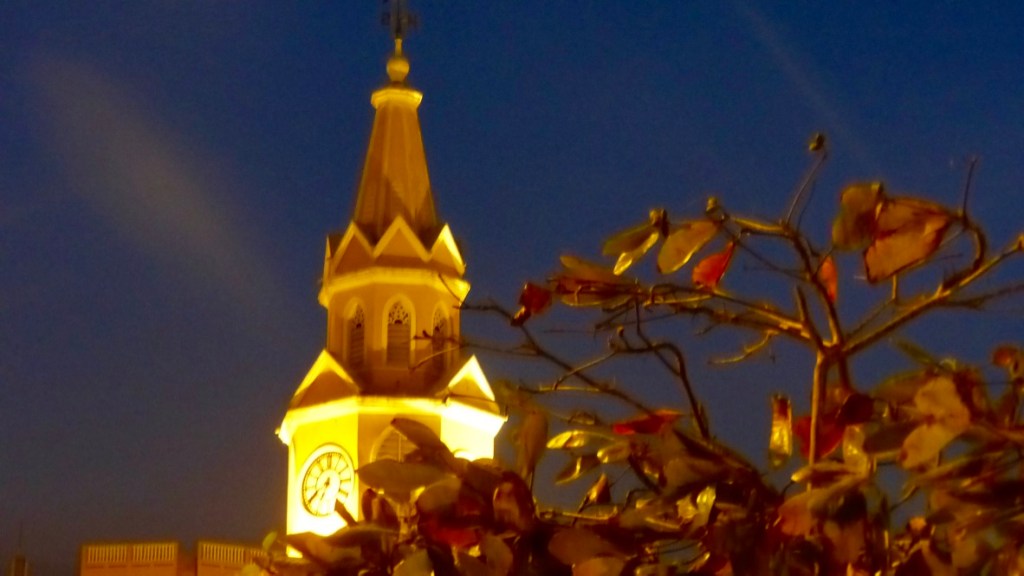 Nous avons quitté la maison de Nina à Barichara à 17h, nous sommes arrivés à Cartagena à 14h30 le lendemain ! Les aleas du transport terrestre! Nous avions réservé un bus direct (donc plutôt rapide) de San Gil à Cartagena (750 km) , départ 19h / arrivée 8h30. Nous quittons San Gil avec 45 mn de retard (le bus arrive de Bogota). Bus confortable, places devant, super chauffeur, tout va bien …jusqu’à Buccaramanga (2h30 de route) où nous faisons escale et où il semble manquer un passager dans le bus. Petit contretemps, finalement nous repartons. Il fait nuit , je m’installe confortablement pour glisser dans les bras de Morphée. Je me réveille 2h plus tard, le bus est arrêté devant une station service…..il est en panne depuis 1 h !!! La réparation ne pouvant être faite sur place, on nous transfère dans un autre bus qui passe par là (et qui n’est pas un direct !). Nous avons perdu nos belles places à l’avant et allons nous geler une partie de la nuit à cause de la clim !!! Nous ferons plusieurs arrêts (dont un pour le petit déjeuner) et arriverons à destination avec presque 6 h de retard sur l’horaire prévu ! Nous aurons au moins vu les paysages de la côte nord ouest !
