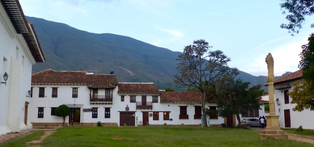 Après une petite pause et un café offert par la maison, nous profitons d’une éclaircie pour aller découvrir la ville. Villa de Leyva est une ville coloniale fort bien conservée avec une immense place centrale : la plaza Mayor. Un vrai décor de cinéma ! on s’attend à voir surgir Zorro sur son destrier !!!